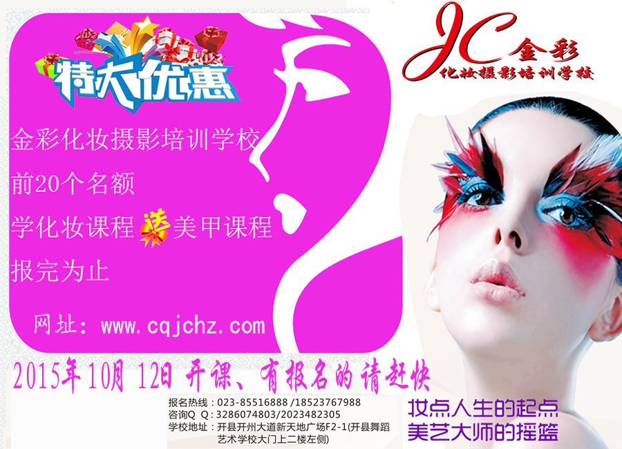 开州金彩化妆摄影培训学校2015.10.12日正式开课啦!!!